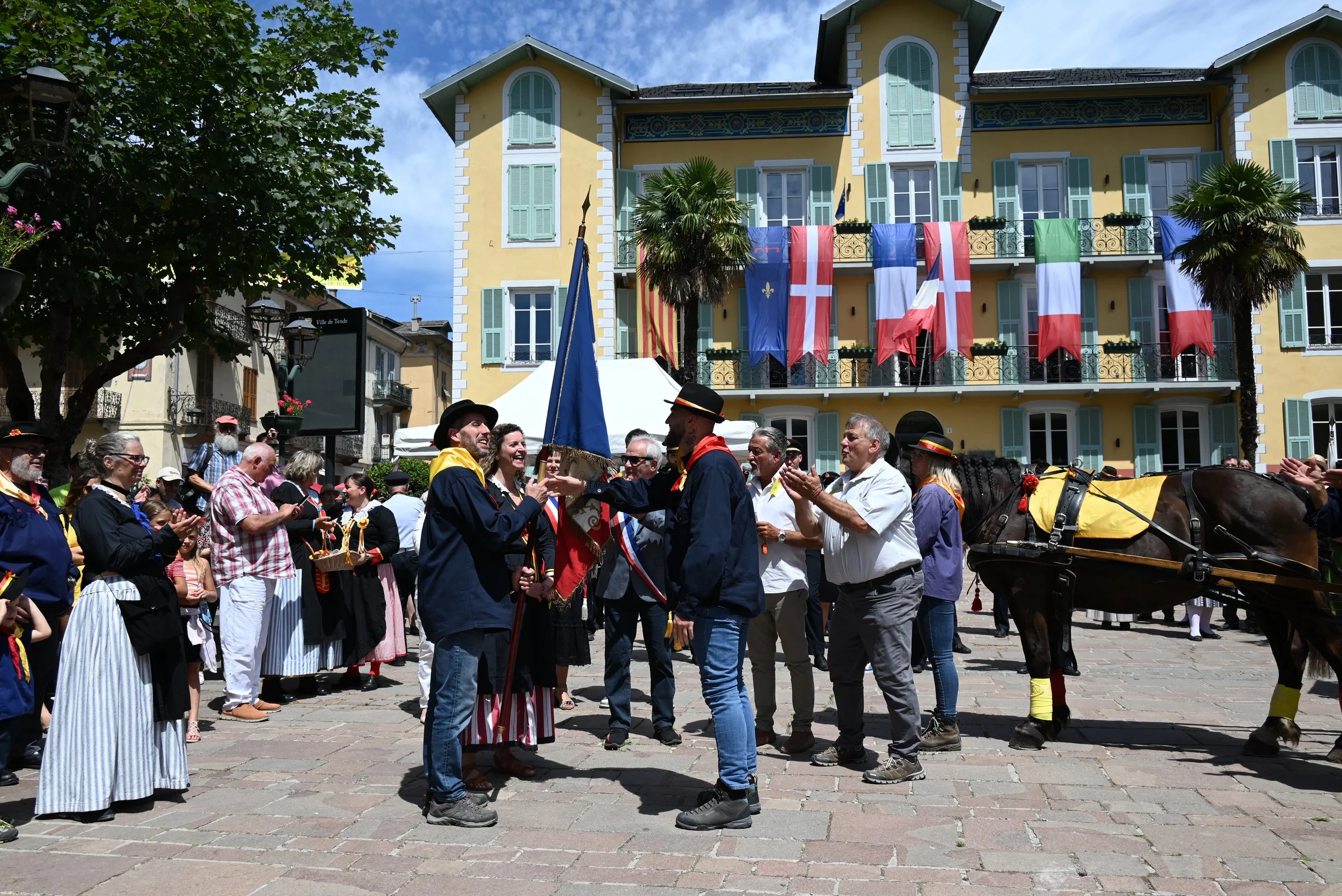 Offertes par le Conseil Départemental, la Ville de Tende et la Confrérie de la St Eloi, elles sont remises à chaque couple de Prieurs, ainsi qu’au plus jeune cavalier.